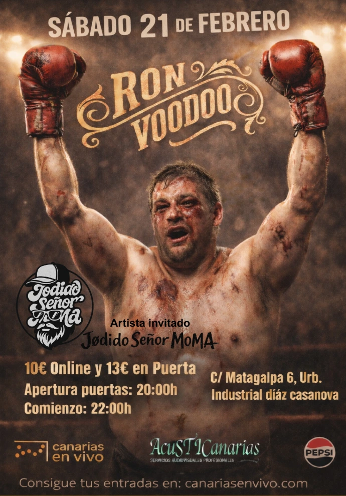 Ron VooDoo + Jodido Señor Moma el Sábado 21 de Febrero en Canarias en Vivo.